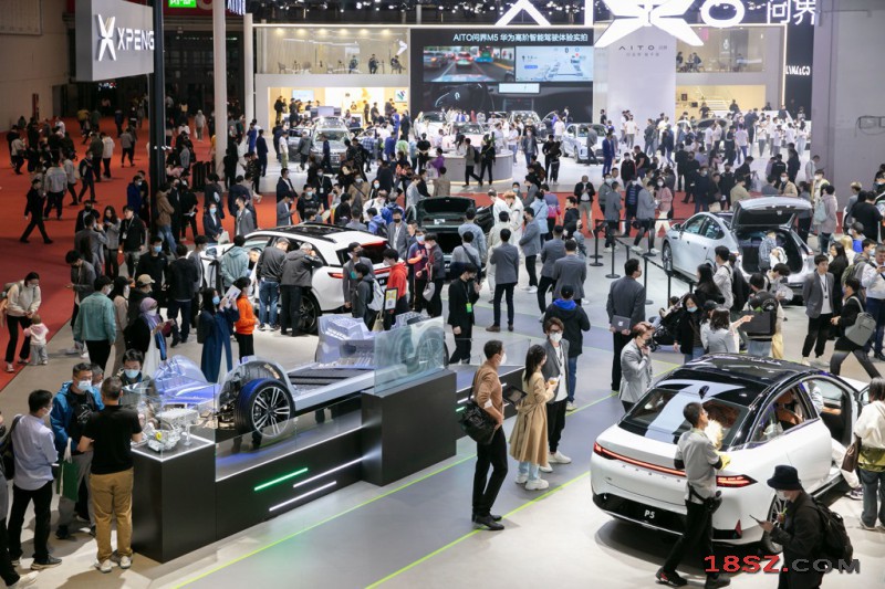 预估中国4月新能源车销售较去年同期暴增114%,2023年全年新能源车销量有望达到汽车总销量36%。图为4月举行的上海车展。(图/新华社)