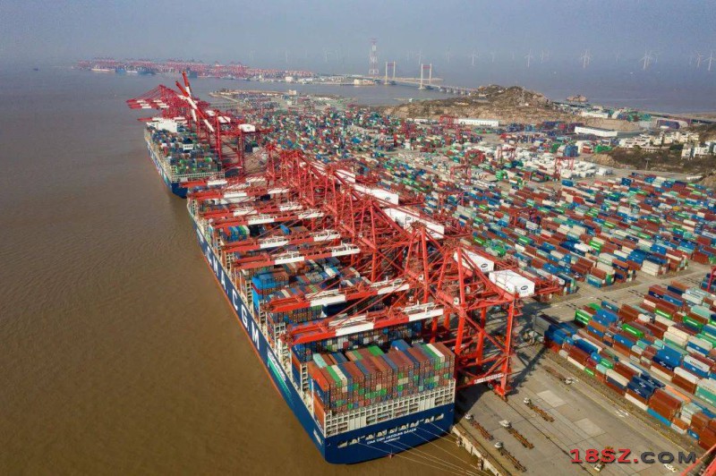 世界最大集装箱船首航青岛港