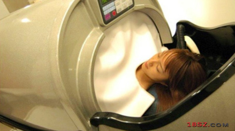 这款洗澡机拥有一间长椭圆清洗舱,用户躺进去,合上舱盖,便可在音乐声中像洗衣机里的衣物一样被清洗,只是没有洗衣机的甩干功能。