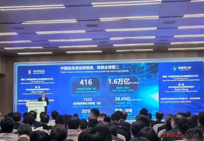 据中新社报道,作为2026中关村论坛年会平行论坛之一,全球独角兽企业大会星期天(3月29日)在北京举办。会上发布的《中国独角兽企业发展报告(2026年)》指出,中国独角兽企业总估值合计约1万6095亿美元,平均每家企业估值约为38.69亿美元。