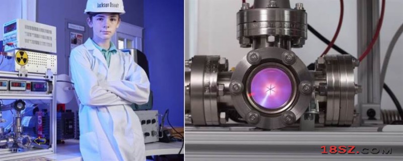 即将13岁的杰克森‧欧斯华特,完成核融合发生器(黄色箭头处),高温电浆中,包覆着氘核。 (图/GWR)