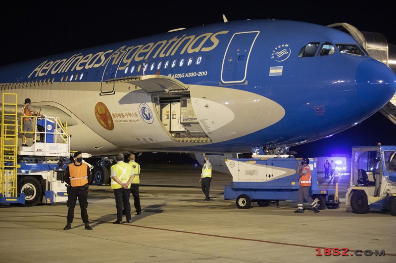 图为首批中国新冠疫苗运抵阿根廷