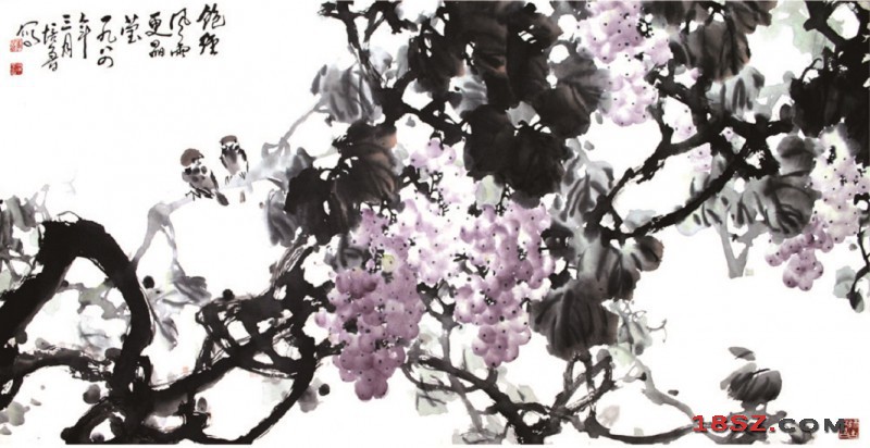 国画葡萄双雀-文化艺术-图库-国际会展网